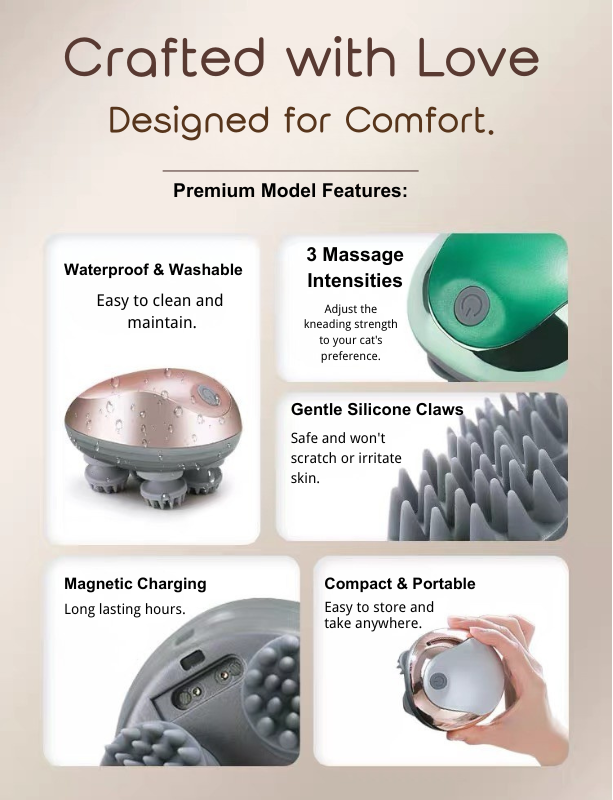 3 Massage Intensities - Adjust the kneading strength to your cat's preference.